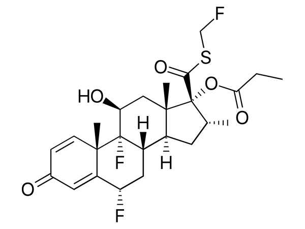 Moleculaire formuleï¼C25H31F3O5SSynoniemen: S-Fluormethyl-6alpha,9alpha-difluoro-11beta-hydroxy-16alpha-methyl-3-oxo-17alpha-propionyloxyandrosta-1,4-dieen-17beta-carbothioaat; (6a,11b,16a,17a)-6,9-Difluor-11-hydroxy-16-methyl-3-oxo-17-(1-oxopropoxy)androsta-1,4-dieen-17-carbothioic acid S-( fluormethyl)ester